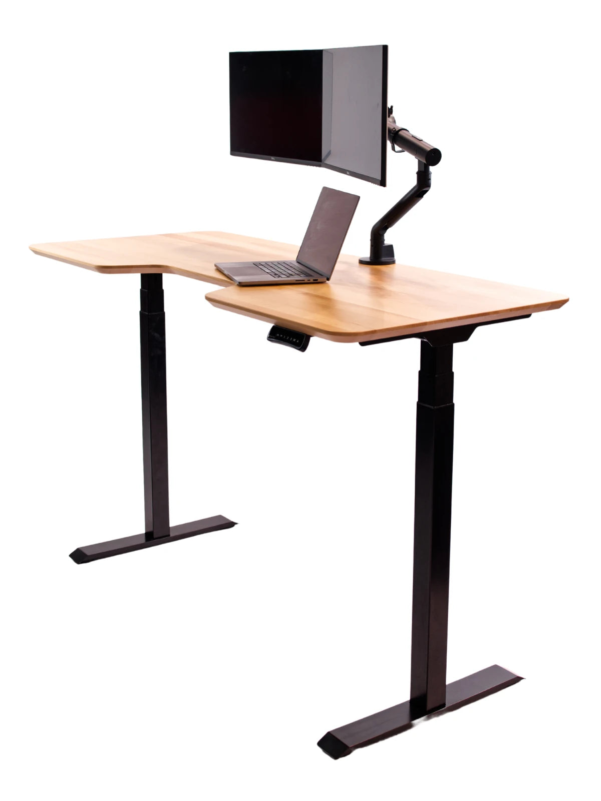 Das einzigartige, nierenförmige Design des Core Desk bietet eine natürliche Armauflage, die bei herkömmlichen Stehschreibtischen oft fehlt. Diese innovative Form erinnert an die bequemen Armlehnen eines Stuhls und ermöglicht eine entspanntere und ergonomischere Arbeitshaltung.