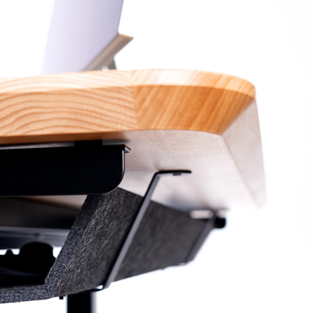 Core Desk’s unique kidney-shaped design provides the natural arm support typically missing from traditional standing desks. This innovative shape mimics the comfortable armrests of a chair, allowing for a more relaxed and ergonomic posture while working.